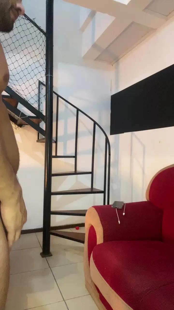 Watch his naked natural body get fucked with big toys